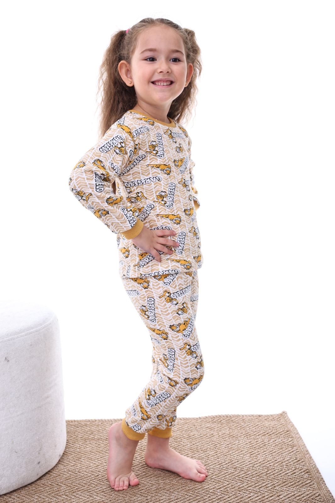 hem kız hem de erkek çocukların keyifle giyebileceği bu çok yönlü pijama takımı, yüksek kaliteli, nefes alabilen mevsimlik pamuklu kumaştan üretilmiştir.